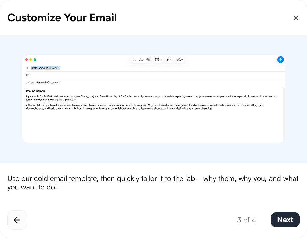 How might we enable UC Davis students, from those new to research to experienced applicants, to efficiently discover and assess laboratory opportunities without only relying on personal connections or the uncertainty of cold outreach?